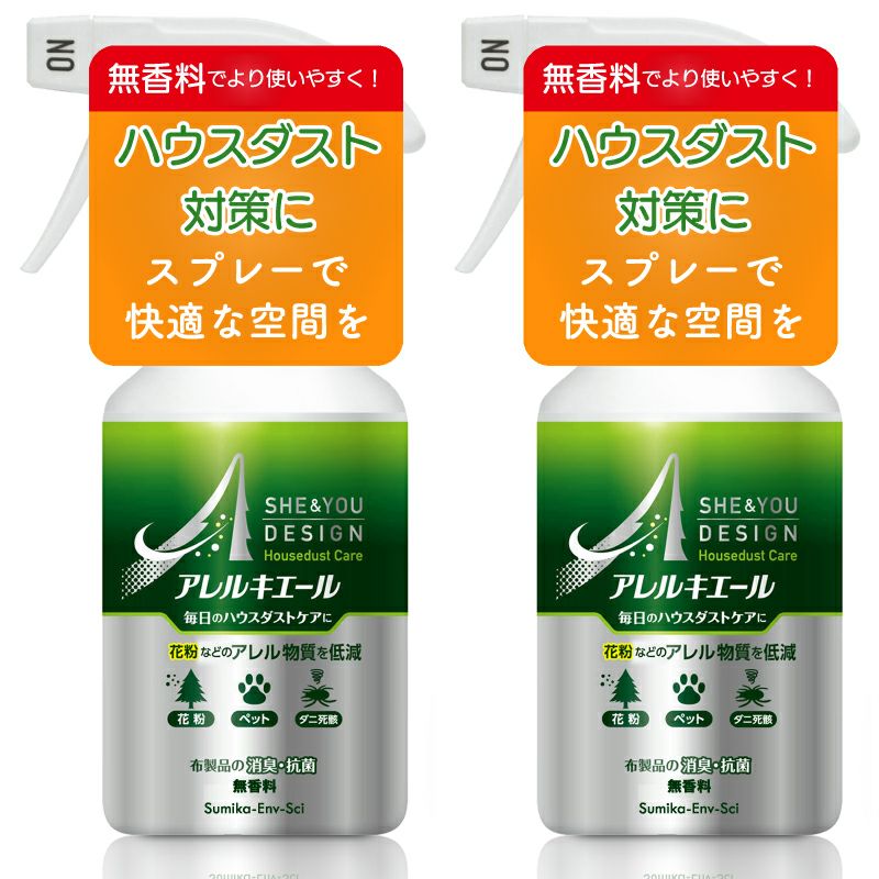屋内用 花粉対策 スプレー アレルキエール 300mL 2本組 花粉及びダニ・ペット由来のハウスダストに アレル物質低減スプレー 花粉 ダニ 花粉対策グッズ 掃除 除去 消臭 無香料
