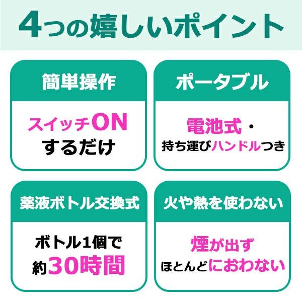 屋外の蚊対策に40㎡の広範囲に効く。電池式、小型で携帯可能、アウトドア、キャンプ、バーベキュー、ビニールプール、ガーデニング、洗濯干しの時など、やぶ蚊、シマカなどの蚊を寄せつけない空間を作ります。