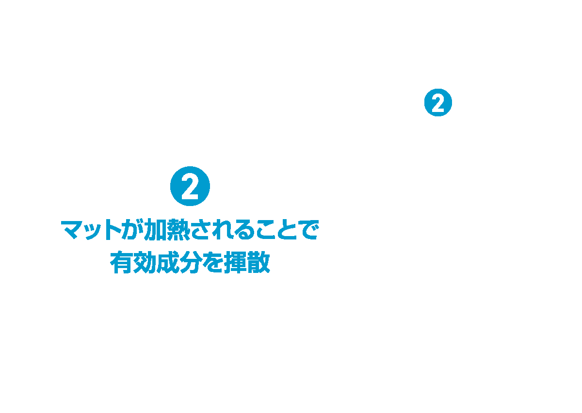 空間に薬剤を揮散させるので、肌に薬剤をつける必要がありません。
